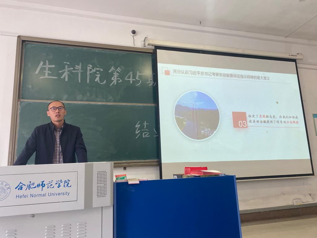 最后,李万成带领大家认真学习了习近平总书记今年8月考察安徽的重要讲话指示精神。李万成紧紧围绕“充分认识习近平总书记考察安徽重要讲话指示精神的重大意义”“全面把握在习近平总书记2016年视察安徽重要讲话精神指引下美好安徽建设取得的新成就”“深刻领会习近平总书记考察安徽重要讲话指示精神的丰富内涵”“切实推动习近平总书记考察安徽重要讲话指示精神落地生根”四个方面展开对习近平总书记考察安徽重要讲话指示精神系统宣讲解读。他希望各位入党积极分子要加强学习,用习近平总书记考察安徽重要讲话指示精神武装头脑,争做有理想、有道德、有文化、有纪律的新时代青年,为建设美好安徽贡献出自己的一份力量。(生命科学学院)