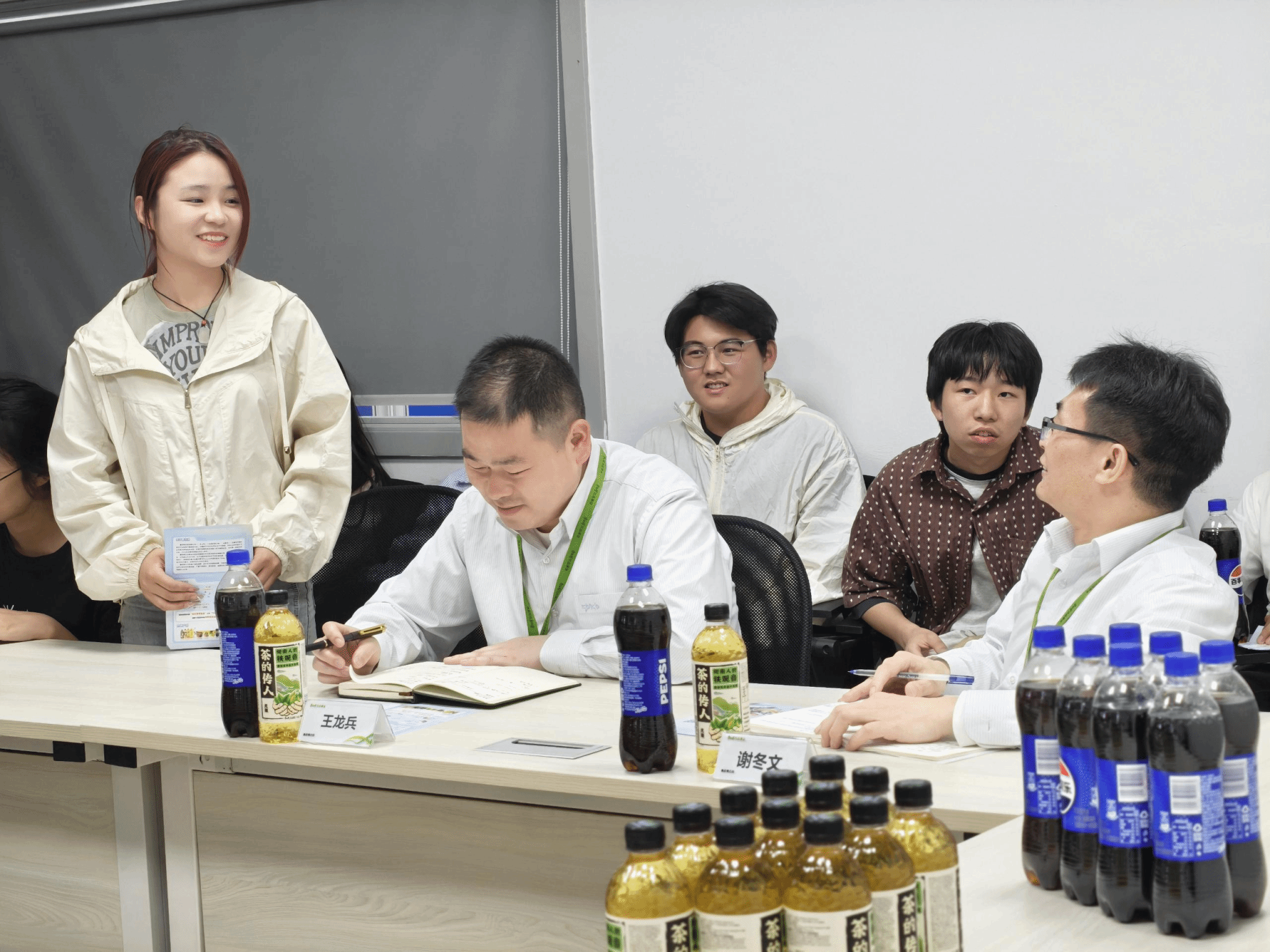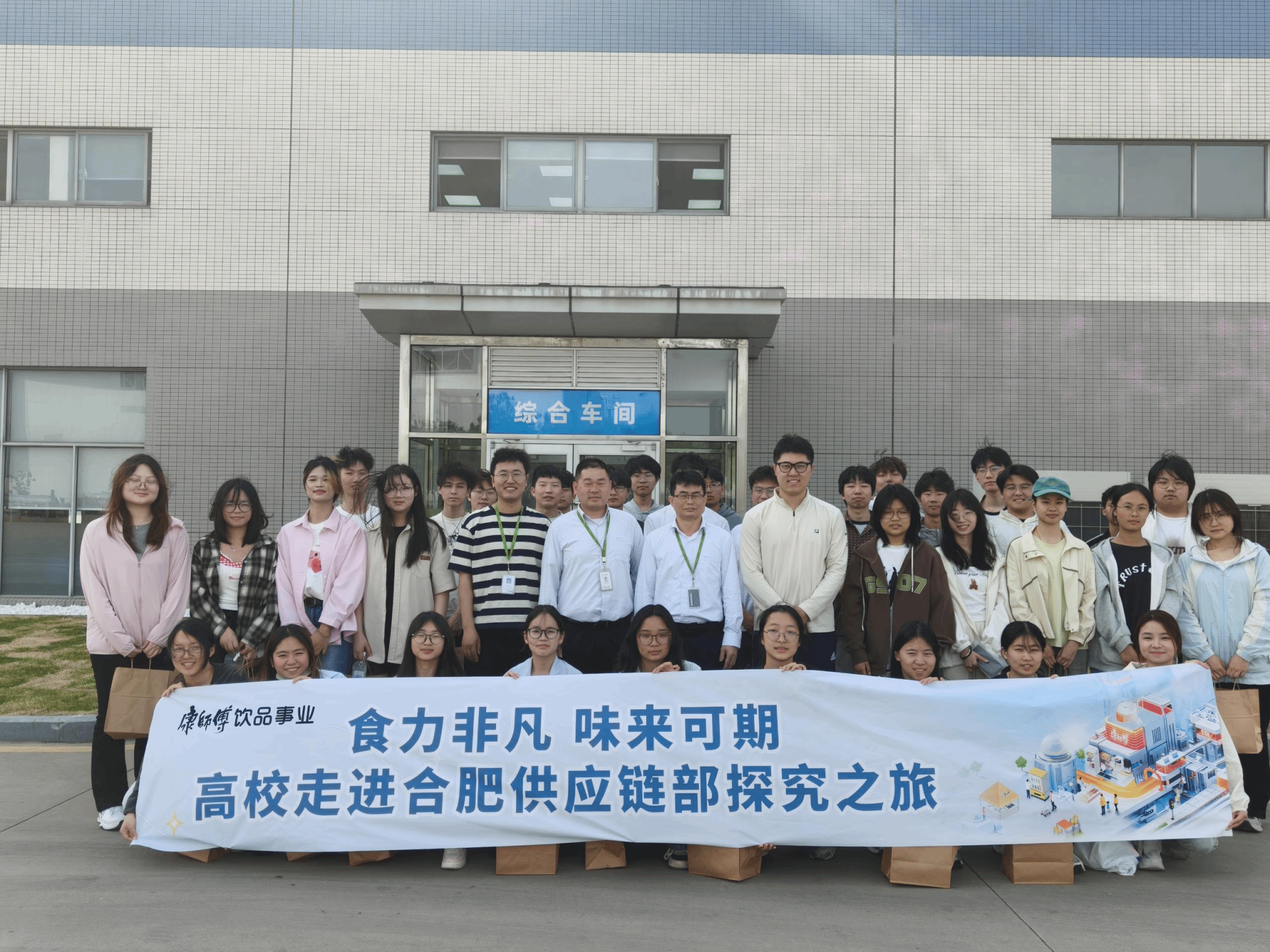 为进一步深化校企合作、拓宽毕业生就业渠道,推动应用型人才培养, 4月16日,久久久久久国产精品食品质量与安全党支部书记徐浩然带领30余名团学骨干赴康师傅控股旗下核心企业—合肥顶津食品有限公司开展校企学习交流活动。本次活动旨在搭建校企合作平台,探索产学研协同创新模式,助力学生职业发展。康师傅合肥顶津食品有限公司合肥品管处处长谢冬文、检验科科长王龙兵、校企招聘专员时义杰参加此次学习交流活动。