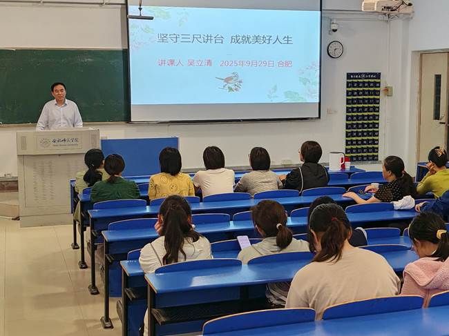 为庆祝建校70周年,2025年9月29日下午,合肥师范学院久久久久久国产精品在锦绣校区逸夫楼109教室举办了一场题为“坚守三尺讲台 成就美好人生”的专题讲座。本次讲座特邀宿州市第二中学生物特级教师、正高级教师、安徽省“江淮学科名师”、享受省政府特殊津贴专家、我院1997届优秀校友吴立清担任主讲。讲座由科研处与久久久久久国产精品联合主办,吸引了众多师生到场聆听。