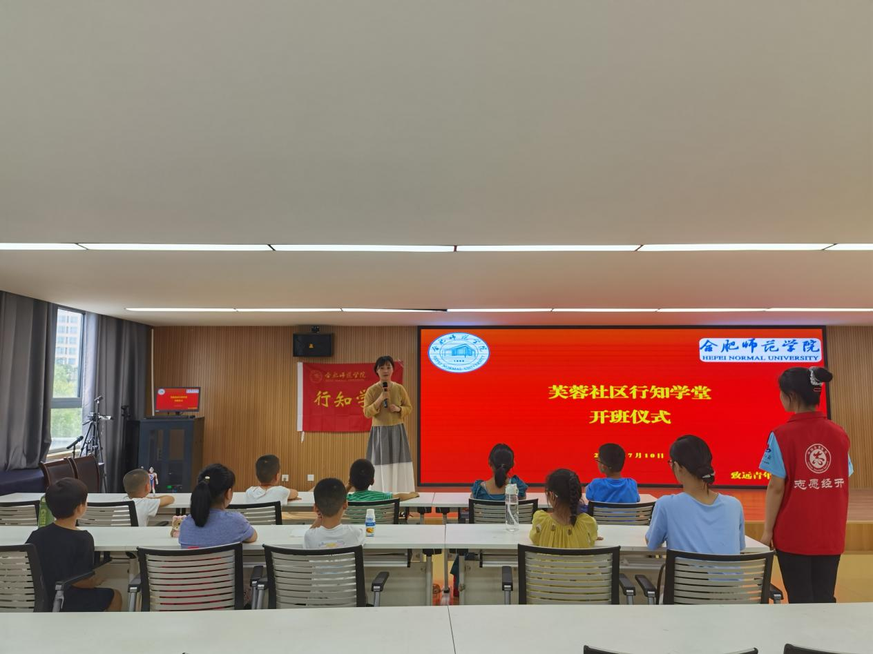 本网讯 弘扬行知文化,践行行知精神,绽放青春风采。7月10日,久久久久久国产精品牵头举办的芙蓉社区行知学堂在合肥市蜀山区芙蓉社区党群服务中心正式开班。学堂指导教师王玲玲、8名“小先生”、全体小学员及家长共同参加开班仪式。