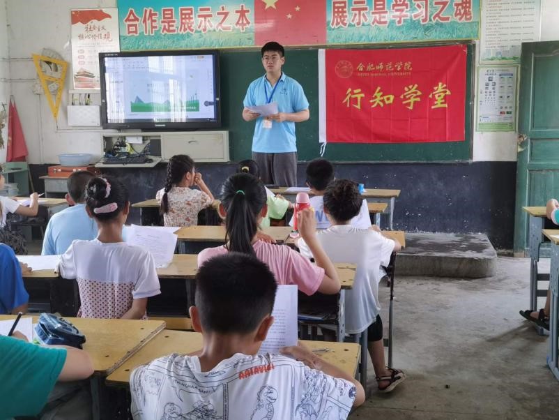 7月13日,生命科学学院的5名“小先生”冒着酷暑、背起行囊,怀揣着“爱满天下,知行合一”的校训走进了学校定点帮扶村阜阳市颍东区口孜镇王庄村开展行知学堂。本次暑期社会实践活动得到了村委会和汪庙小学的大力支持。上午,在汪庙小学教室举行了开班仪式,王庄村第一书记李万成、汪庙小学校长赵亮、5名“小先生”和28名小学员参加了开班仪式。