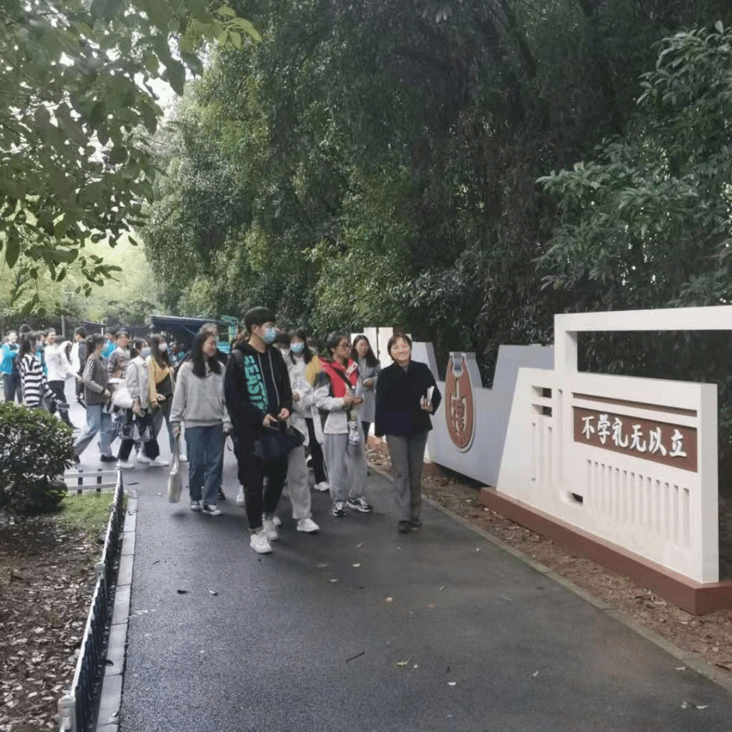 见面会后,傅文茹带领同学们参观了校园环境,并向同学们讲述了学校每一处标语的含义。