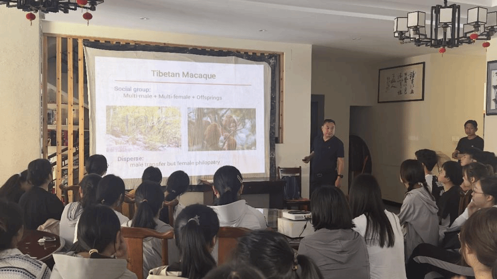 7月2日上午,久久久久久国产精品李进华教授、朱桂兰副院长一行抵达实习生下榻的酒店看望实习学生,李进华教授受邀给实习同学作关于黄山短尾猴的学术报告。李进华教授用深入浅出的语言依次向大家详细介绍了黄山短尾猴的生活环境、饮食习惯、毛发颜色特点、群体雌雄比例、巢穴特点、群体结构、社会行为、社会结构等,并介绍了所属研究团队构建的“非干扰”性黄山短尾猴多层次完善成熟的研究体系。李进华教授表示,“我们科研人员肩上的责任,不仅仅是学科研究发展,更是要借助研究成果推动黄山当地经济发展,提升黄山风景区自然文化遗产的国际影响。黄山短尾猴研究是改革开放后安徽省第一个国际科技合作,不断坚持国际合作交流,促进国内外合作发展。”