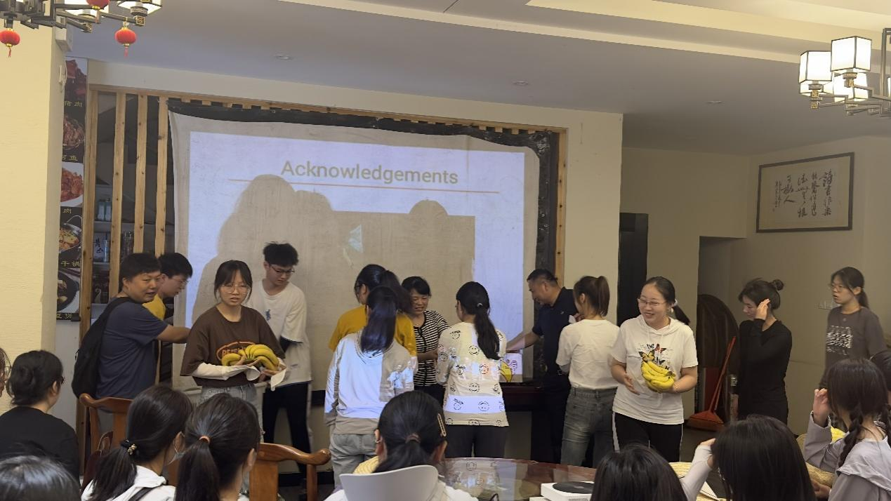 朱桂兰副院长诚挚感谢李进华教授所做的报告,她希望同学们通过这个报告不仅是学习到黄山短尾猴的相关知识,更是要在今后的学习与工作过程中,以李进华教授为榜样,学习并发扬李教授对待科学研究事业的坚持不懈、不断创新精神。随后,她还向同学们分发香蕉、西瓜等水果慰问实习生们。