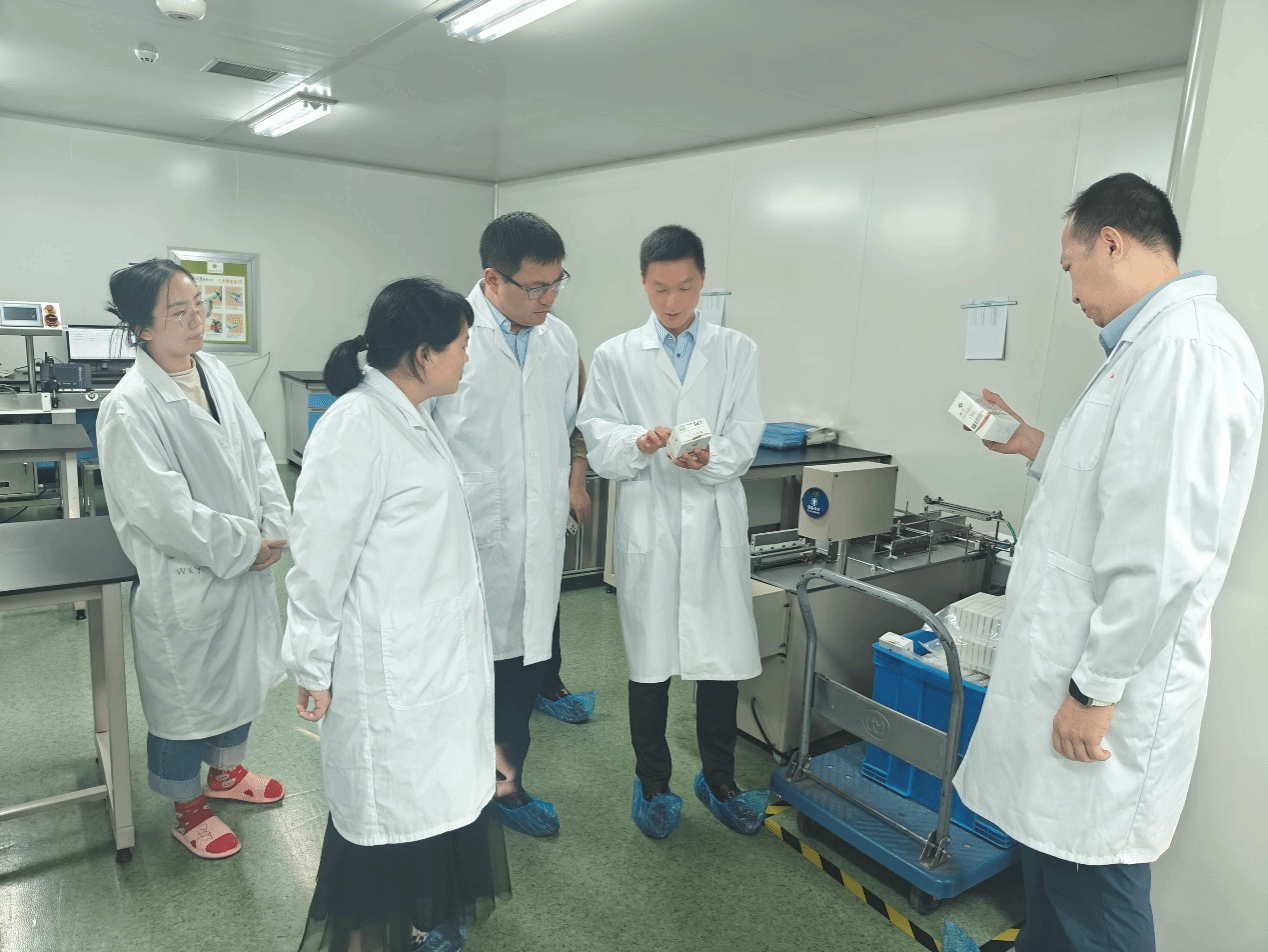 随后,周校长一行在芮总等的陪同下参观了大千生物研发中心与生产车间。参观过程中,周端明再次强调研发需要关注科技前沿,企业与高校需要进行资源优势互补,让高校成为企业的研发中心,成为企业的前沿研发阵地,充分发挥高校的科研优势。