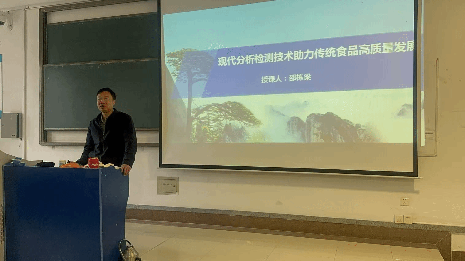 2024年11月20日,邀请安徽省食品行业协会副会长、安徽国科检测科技有限公司董事长邵栋梁教授,为食品质量与安全专业学生和教师作“现代分析检测技术助力传统食品高质量发展”课程讲座,由食品质量与安全教工党支部书记郭娜主持。