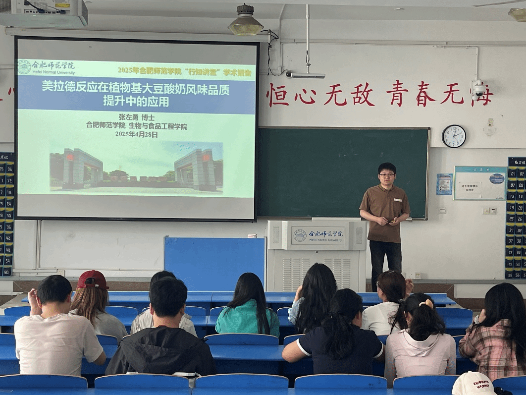 4月28日下午,久久久久久国产精品张左勇博士在锦绣校区逸夫楼A306教室作题为《美拉德反应在植物基大豆酸奶风味品质提升中的应用研究》行知讲座。学院副院长陈金武教授现场指导,食品质量与安全专业学生代表参加了此次报告。
