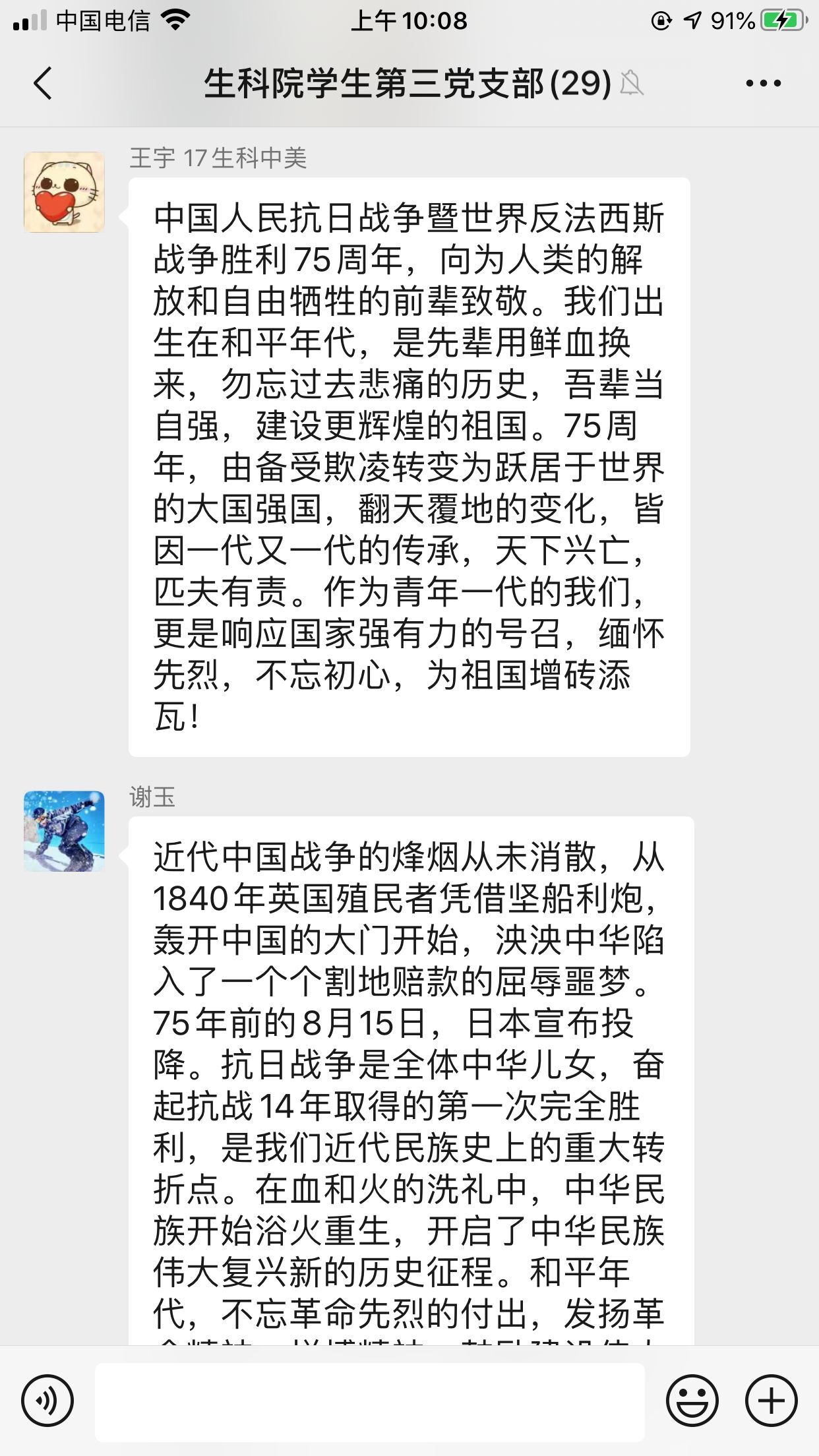 生科院学生第三党支部组织观看纪念中国人民抗日战争暨世界反法西斯战争胜利75周年纪念活动