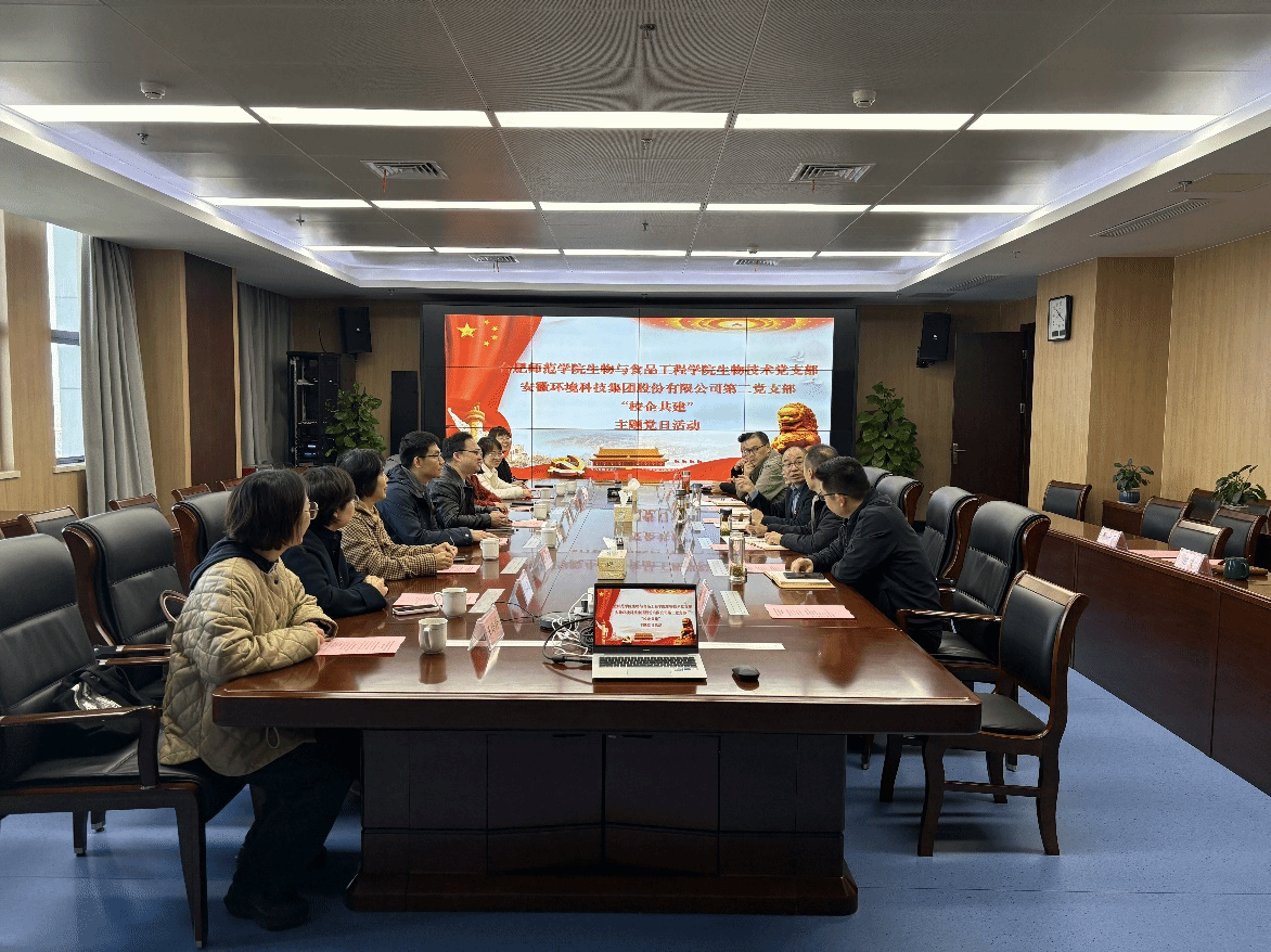 为深入学习贯彻党的二十届三中全会精神,拓展基层教工党支部建设的形式与内容,提升校企双方党建工作水平,开创基层党建工作新局面,生物技术教工党支部在支部书记陈金武带领下,于2024年11月22日赴安徽环境科技集团股份有限公司开展党建共建活动。公司第二党支部书记、集团总经理助理、工程管理部总经理杨福德,宣传委员、规划设计院院长杨阳,纪检委员、成本控制部总经理蒋佩娟等领导及公司党员骨干热情接待了陈金武一行。