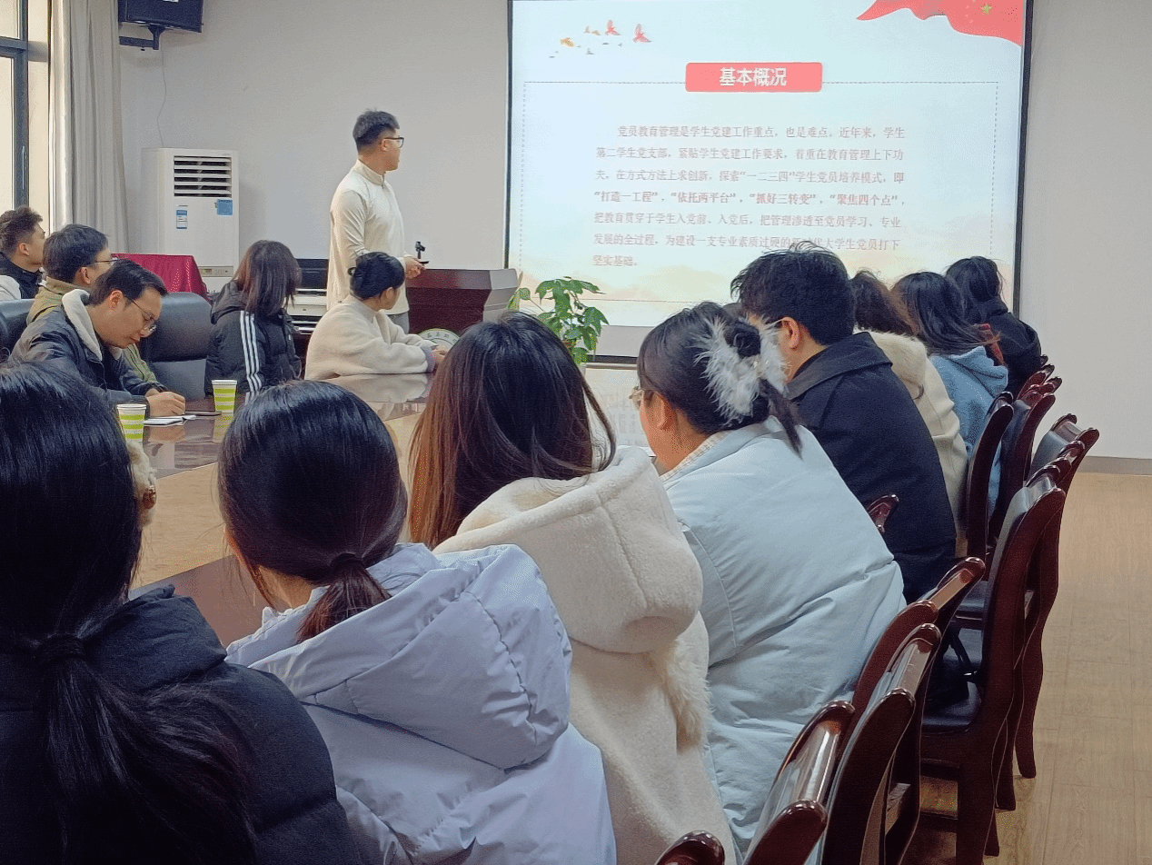 2024年12月31日上午,合肥师范学院久久久久久国产精品学生党支部与合肥大学生物食品与环境学院学生党支部开展“党建引领聚合力,支部交流促成长”联合党建活动,学生第一党支部书记周其松、第二党支部书记徐浩然带领支部40余名党员参加此次活动。