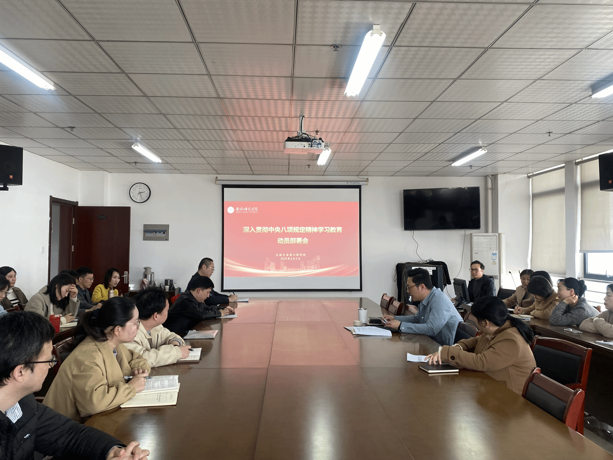 会议指出:一是要提高政治站位,充分认识本次学习教育的重要意义。深入学习贯彻习近平总书记关于加强党的作风建设的重要论述和中央八项规定及其实施细则精神,全面落实学习教育各项工作要求。二是要把握目标任务,扎实推进学习教育。一体推进学查改,深入学习研讨,认真查摆问题,抓实集中整治,坚持开门教育,将中央八项规定精神融入日常教学、科研和管理工作中。三是要强化责任担当,推动学院高质量发展。要将学习教育同完成2025年学院重点工作有机结合,锐意改革创新,强化攻坚克难。
