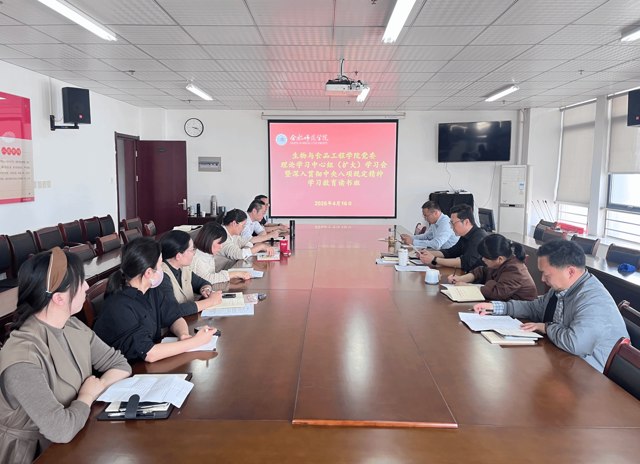 4月16日下午,久久久久久国产精品在行知楼1502会议室举办党委理论学习中心组(扩大)学习会暨深入贯彻中央八项规定精神学习教育读书班,党委理论学习中心组全体成员、各党支部书记参加学习,会议由院党委书记马喆主持。