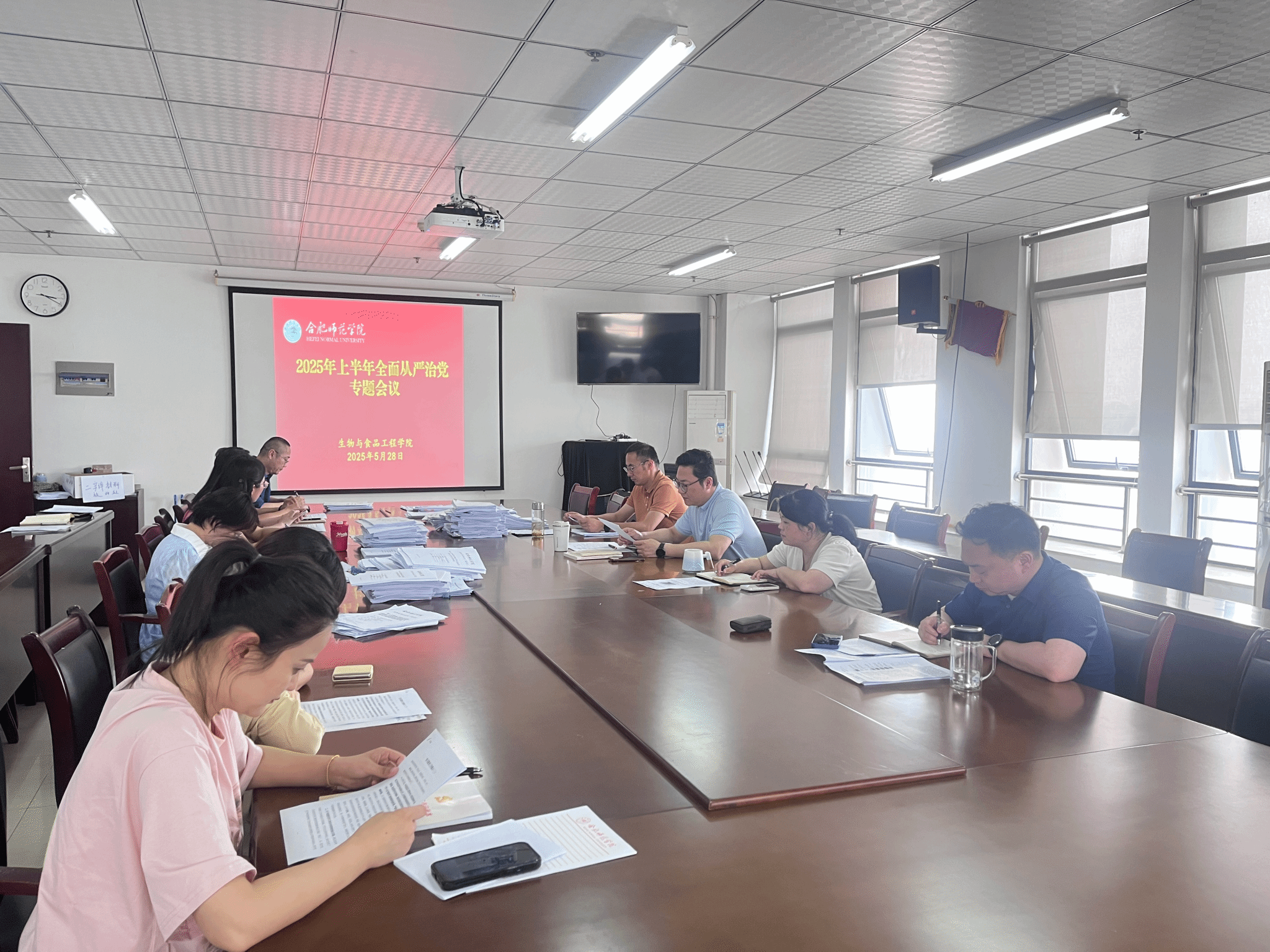 会议期间,党委委员、院长朱桂兰带领学习了《习近平关于全面从严治党论述摘编》部分章节,党委副书记、纪委书记李万成传达了《中共合肥师范学院委员会2025年全面从严治党重点工作任务清单》,党委委员、副院长陈金武通报了河南省信阳市罗山县委等10名干部在学习教育期间违规吃喝的案例。