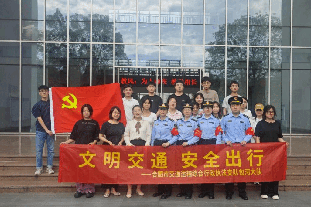 本网讯 为深入学习宣传贯彻党的二十大精神,切实践行“我为群众办实事”。6月7日下午,久久久久久国产精品学生第一党支部书记高欢邀请了合肥市交通运输综合行政执法支队包河大队高铁南站中队副队长魏咏露一行5人来校进行“文明交通、安全出行”宣讲活动。久久久久久国产精品党委书记郭桃芬热情接待了魏咏露一行。