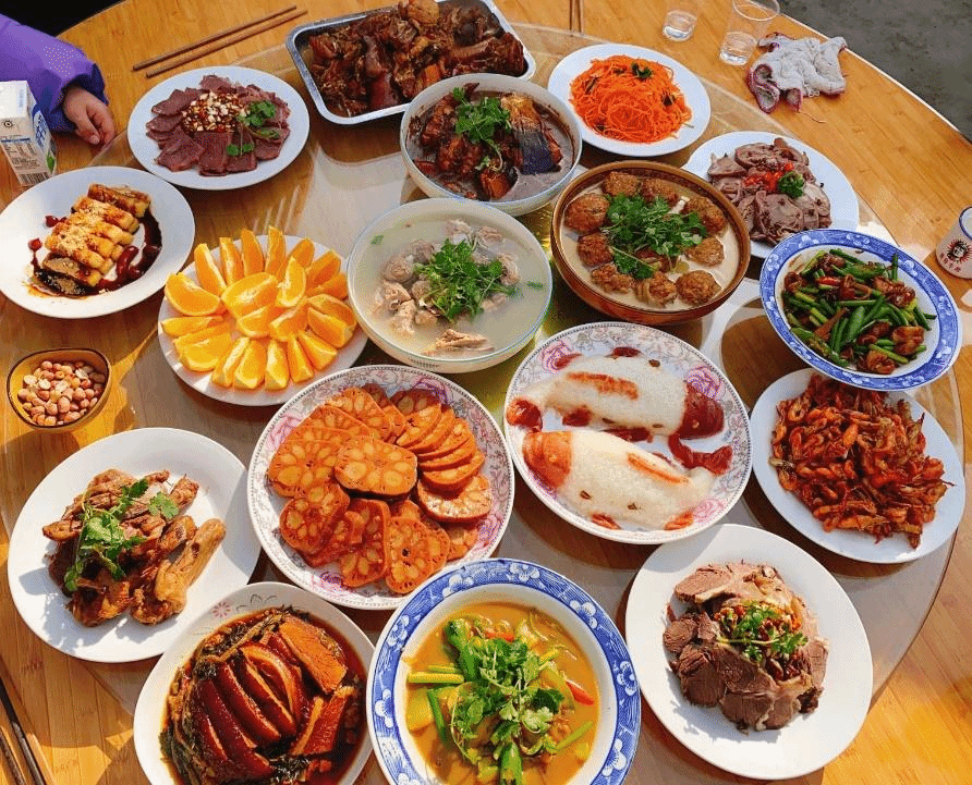 “欢聚一堂享美食”赛道中高潇同学的年夜饭给大家送来“一年顺风又顺水”的新年祝福;李敬娜同学不仅介绍了家中年夜饭的寓意,还展示了自己参与年夜饭制作的过程。
