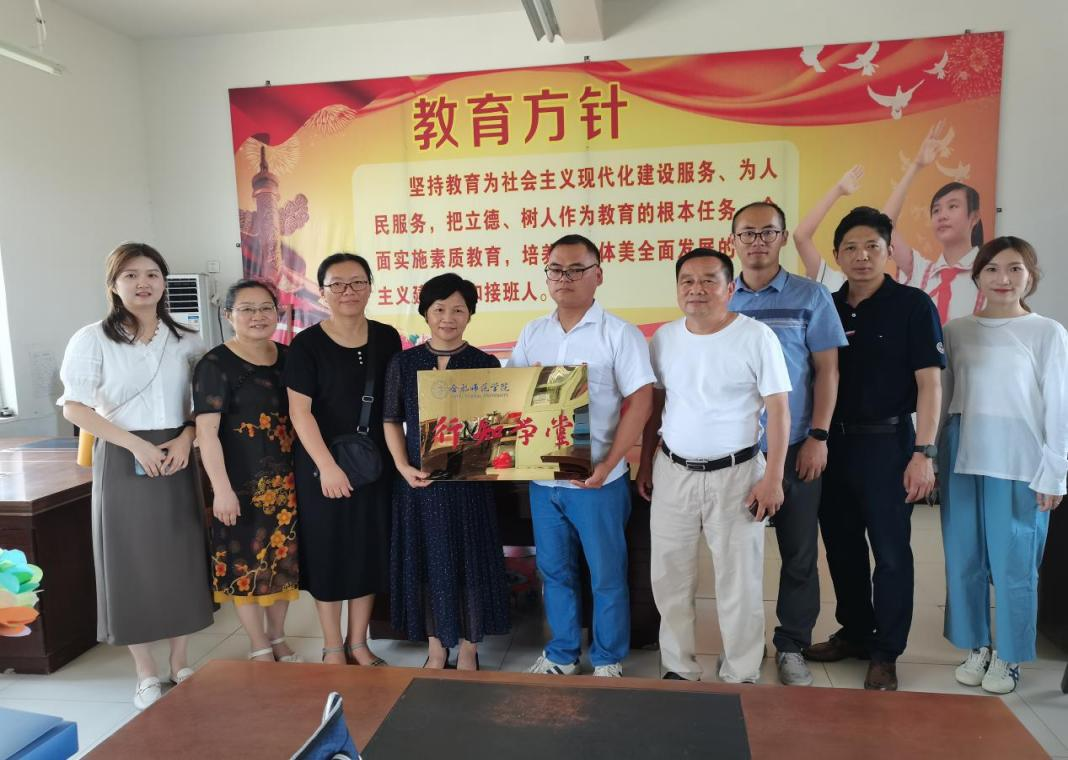 本网讯 “七一”前夕,生命科学学院党委书记郭桃芬、副书记杨娜、副教授袁华玲和朱勇以及党政秘书黄文婷和团委书记黄洁赴阜阳市颍东区王庄村看望我院驻村工作队李万成同志,慰问当地汪庙小学建档立卡学生并举行“行知学堂”挂牌仪式。