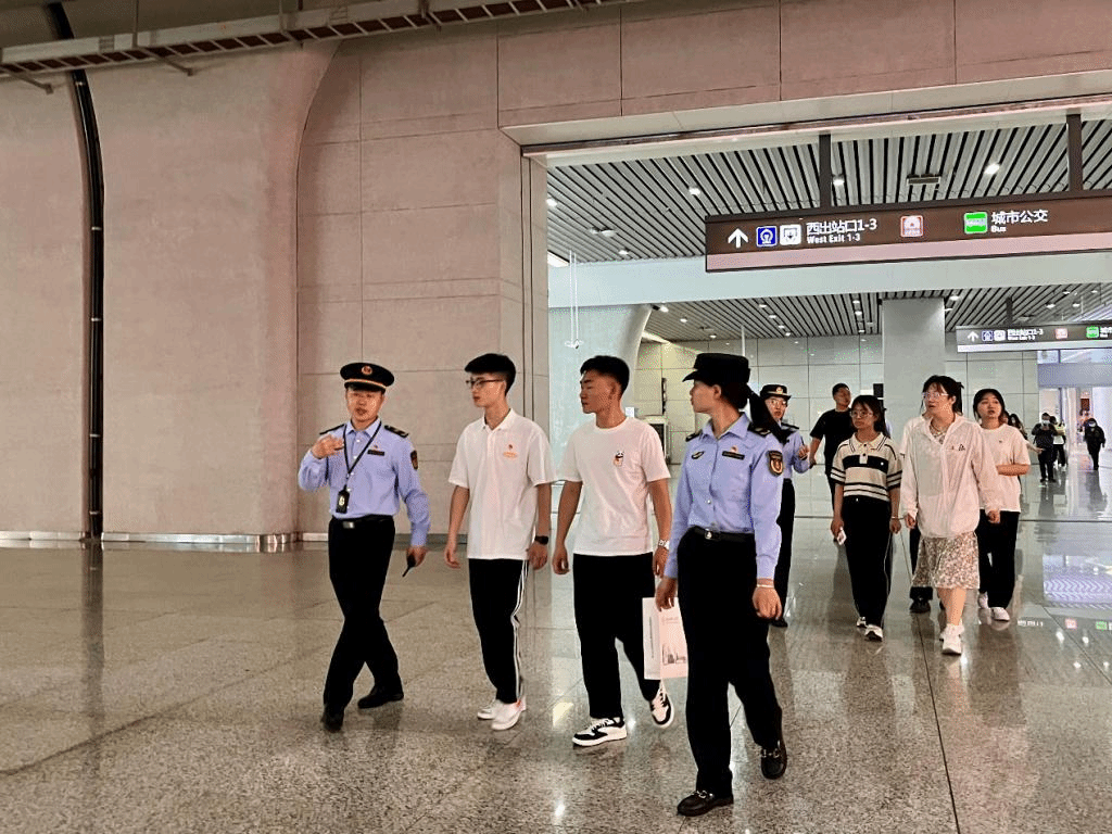 随后,执法人员带领师生们来到高铁到达大厅,全方位的介绍了高铁到达后可以选择的换乘出行方式,指引如何寻找到地铁、公交、出租车、网约车以及私家车在站内的换乘点,进而实现方便快捷出站。