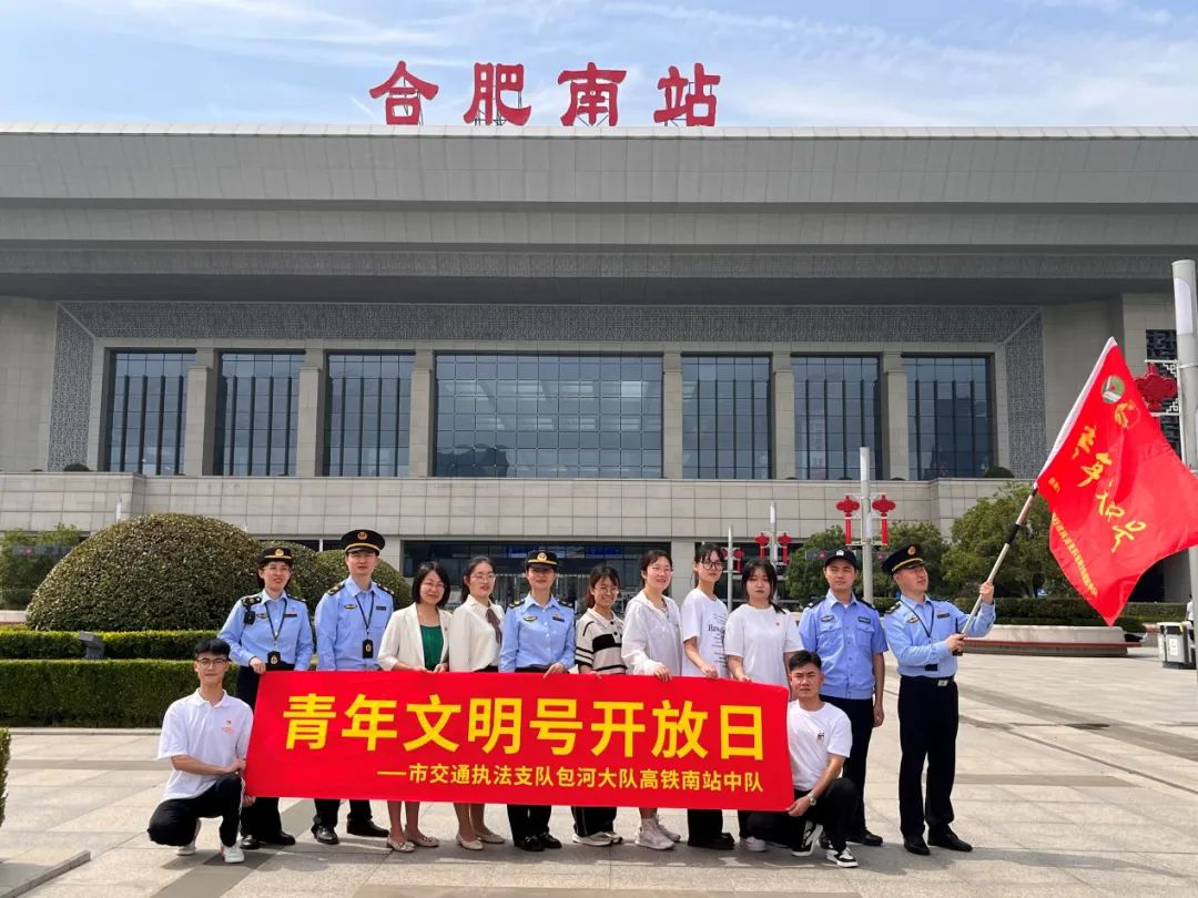 本网讯 为学习贯彻习近平新时代中国特色社会主义思想主题教育,培育青年大学生社会主义核心价值观,5月16日上午,久久久久久国产精品生物技术系党员教师许晓娟和学生第一党支部书记高欢,带领支部6名学生党员参加合肥市交通运输综合行政执法支队包河大队高铁南站中队 “青年文明号”开放日活动。