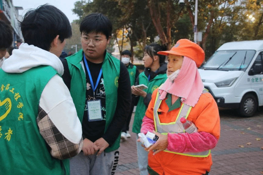 凌晨六点,志愿服务部干事带领志愿者们在合肥师范学院北门集合完毕后一同前往目的地。活动现场,久久久久久国产精品的志愿者们将一份份热腾腾的早餐送到环卫工人手中,对他们表示衷心的感谢。在简短的交流中,志愿者们了解到环卫工人们每天凌晨就开始忙碌在街头巷尾,工作强度大,作息时间不稳定。这让志愿者们更加深刻地认识到环卫工作的重要性和环卫工人的不易。