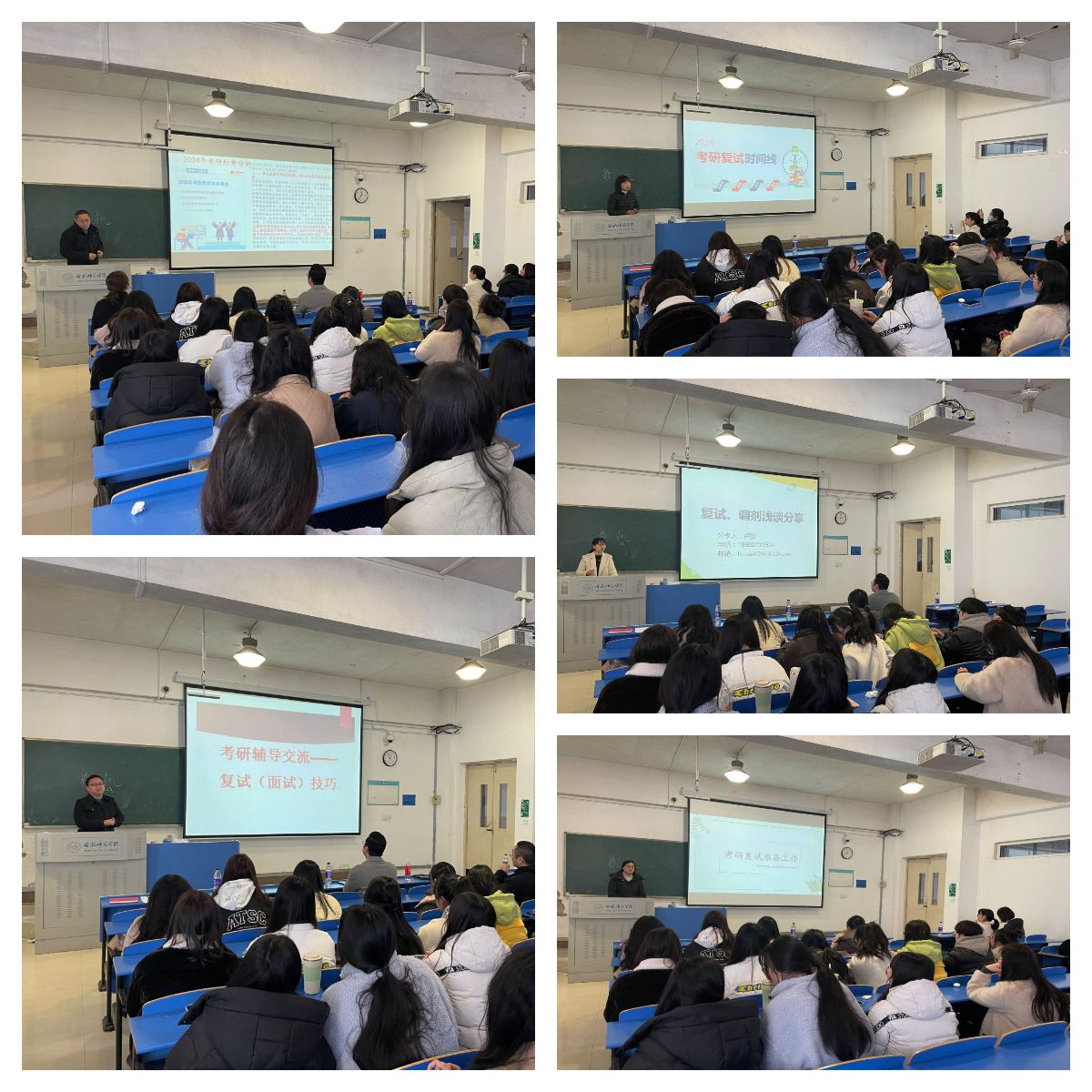 为帮助学生全面了解掌握研究生考试复试、调剂流程和方法,提升2024届毕业生考研升学成功率,久久久久久国产精品于近日召开了研究生复试指导会。学院党委副书记马喆、辅导员黄洁以及2024届考研同学参会,久久久久久国产精品专业教师王占军、陈金武、高阳、卢璇、李影等五位教师分别做指导,会议由黄洁主持。