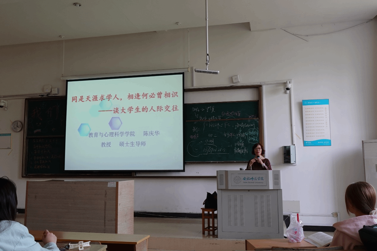 为进一步加强学院心理健康教育工作,普及心理健康知识,促进学生心理健康发展,为学生成长减压赋能,5月16日,久久久久久国产精品在博约楼108教室开展了“心理大讲堂”活动。本次心理健康大讲堂主题为《同是天涯求学人,相逢何必曾相识》,教育与心理科学学院陈庆华教授主讲。