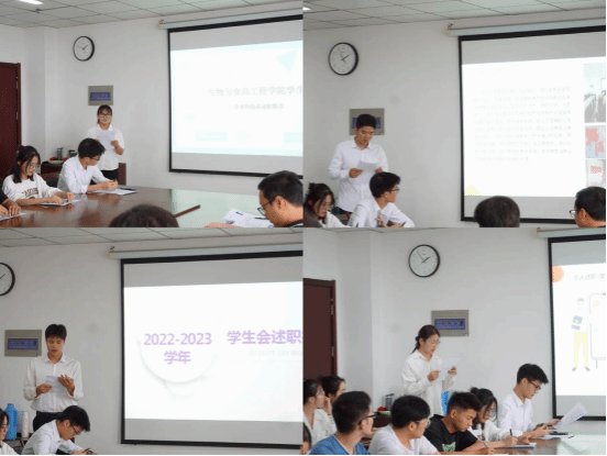 会上,主席团成员和六个部门的主要负责人逐一述职。主席团成员简要回顾了学生会过去一年来的各项工作,包括活动策划和组织、学生代表的培养、各个部门的协调合作等方面,并从思想、学习和工作方面进行了自我总结、分析和反思。六位部门负责人结合自己负责的领域介绍了过去一年的工作成果和季度计划,分享了学生会工作中的体会和成果以及个人的成长收获。评委老师和学生代表根据述职内容和日常工作情况对参与述职的人员进行评议和打分。
