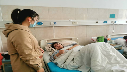 麦丽喀木因身体原因于上周在医院做了手术,住院期间,辅导员高欢前往病房看望,仔细询问了手术情况和医生建议,鼓励她积极配合医生治疗,早日康复回到学校。