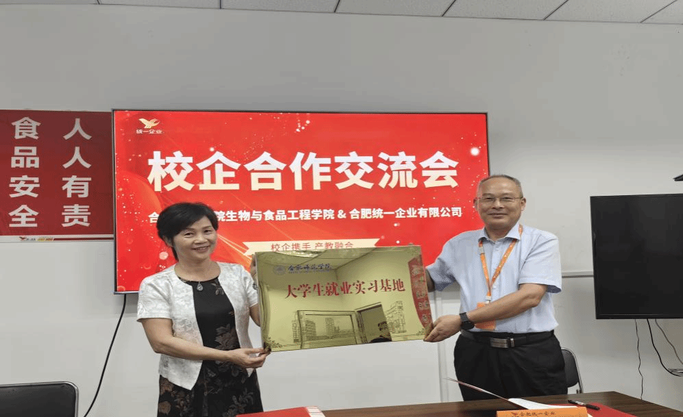 此次访企,受到了合肥统一有限公司厂长丁先海、生产部经理侯振宁等人的热情接待。双方进行了深入的座谈交流,就企业发展现状、人才需求以及学院专业设置、课程安排、学生实习就业以及发展等方面进行了全面的探讨交流。现场双方顺利签订了就业实习合作协议,并举行了共建大学生就业实习基地授牌仪式,为毕业生搭建更加广阔的实习就业平台。