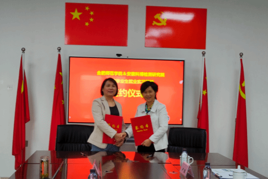 参观后,郭桃芬和徐文环分别代表校企双方签订毕业生就业实习基地共建协议,并举行“合肥师范学院大学生就业基地”“合肥师范学院实践教学基地”授牌仪式。