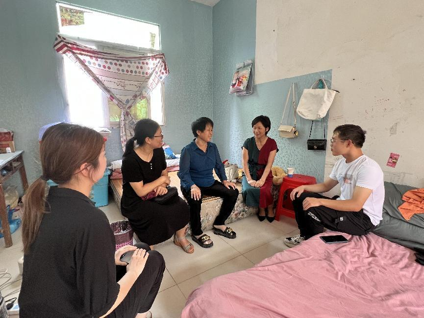 郭桃芬一行走访了砀山县贫困学生张同学和长丰县贫困学生王同学家庭,全面了解俩学生家庭经济状况和暑期居家学习生活情况,在学生家中,与学生家长亲切交谈,深入了解学生家庭的实际困难,向他们宣传党和国家以及学校对贫困学生的各项资助政策,反馈学生在校的学习、生活状况,并向贫困学生发放了慰问金。