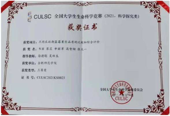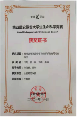 生物技术专业一直非常重视并鼓励学生参加全国生命科学大赛,安徽省生物标本大赛,大学生创新创业大赛等省级以上技能和科技竞赛活动,并精心组织学生参加比赛,选派有经验的教师指导,为学生提供实验场地。通过各种竞赛活动,提高了学生课内外科技活动的积极性,活跃了学习气氛,达到了以竞促学的目的。我专业学生在各种技能和科技竞赛中表现突出,获得省部级以上竞赛奖励40余项,其中国家级比赛金奖1项,三等奖1项,长三角区域级比赛二等奖1项,安徽省省级银奖1项,铜奖1项,省级一等奖2项,省级二等奖6项,省级三等奖8项。